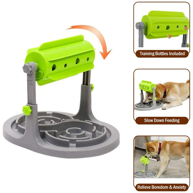 Interactive Dog Cat Food Puzzle Toy Pet Roller Slow Feeder Height Adjustable