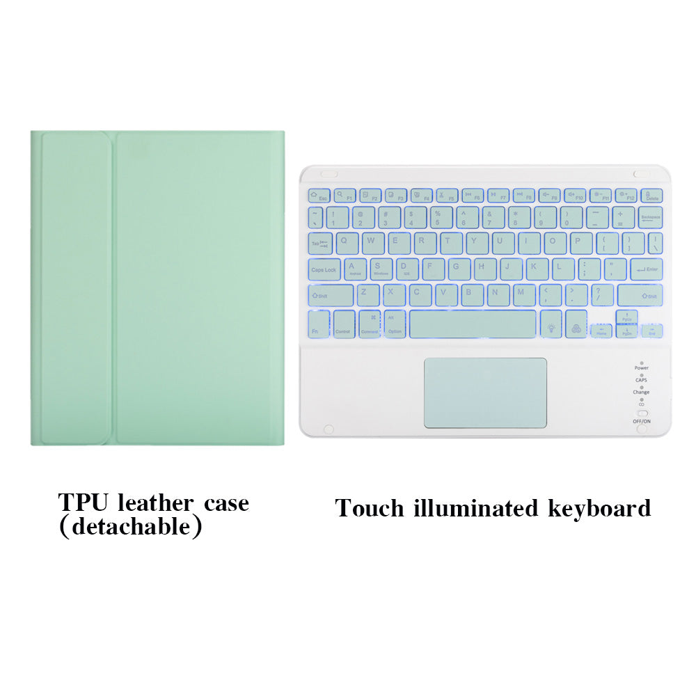 - Product features: TPU leather case with pen groove detachable, bluetooth keyboard with touch function, keyboard with 7-color backlight (light-emitting models only)