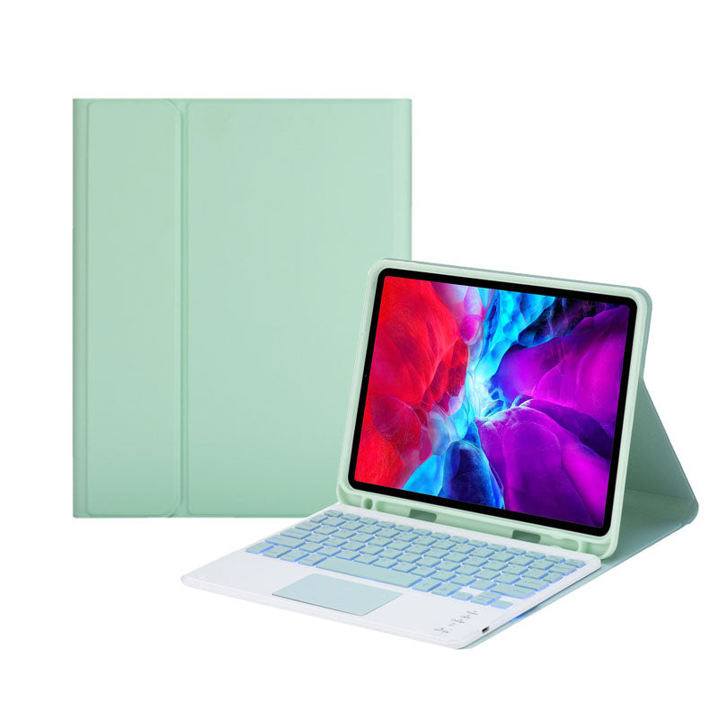 Keyboard Case For iPad 10th(2022)10.9 with 7 Color Backlit Wireless Keyboard Touchpad Pen Slot-Green