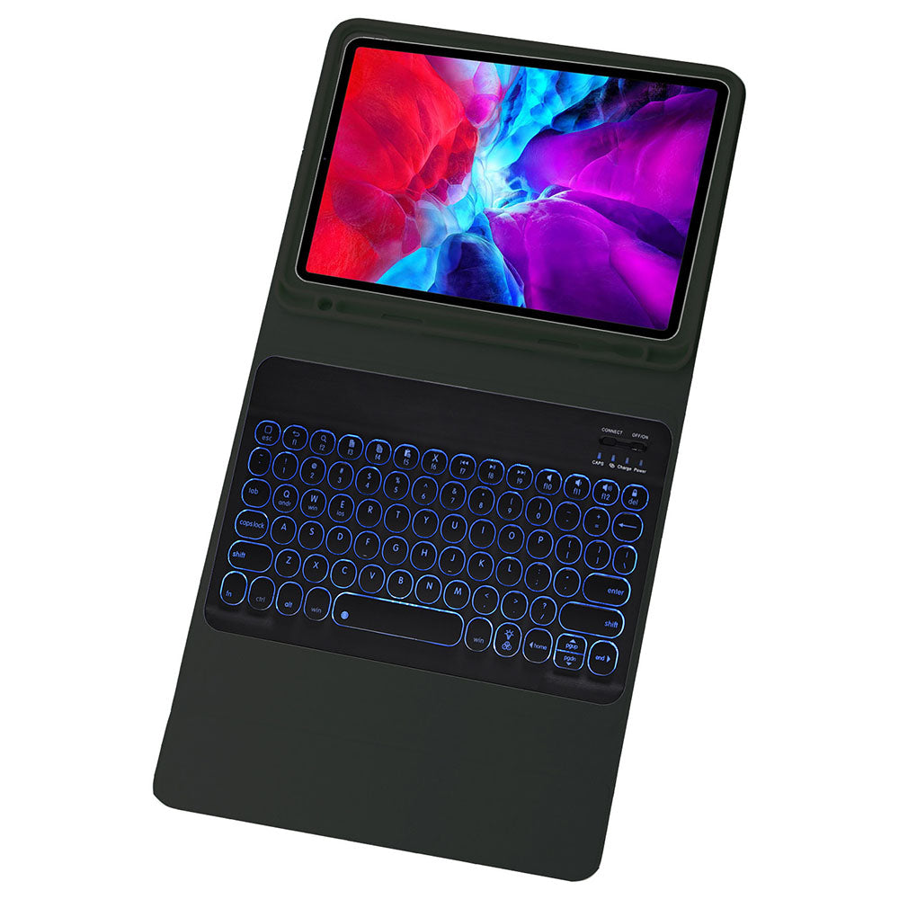 Keyboard Case For iPad Cute Round Key 7 Color Backlit Detachable Keyboard with Pen Slot at the Bottom-Black