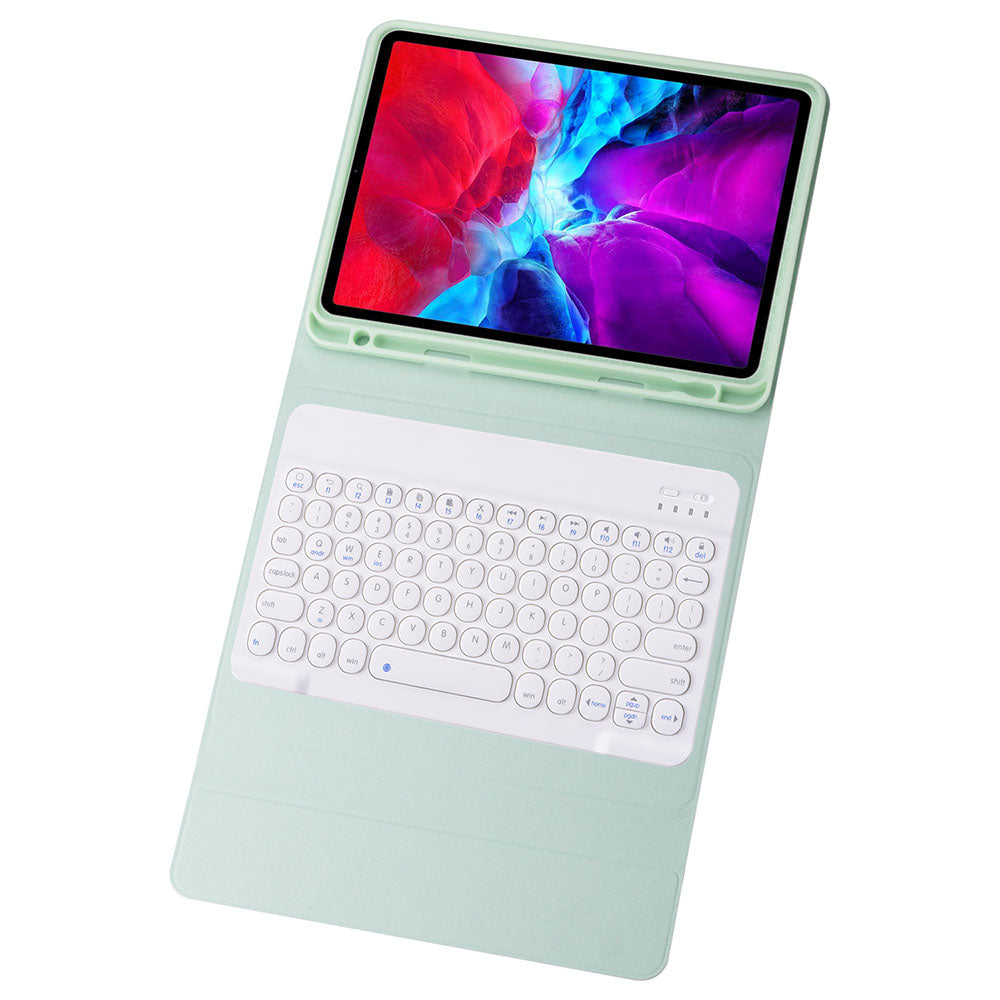 Keyboard Case For iPad Cute Round Key Detachable Keyboard with Pen Slot at the Bottom-Green