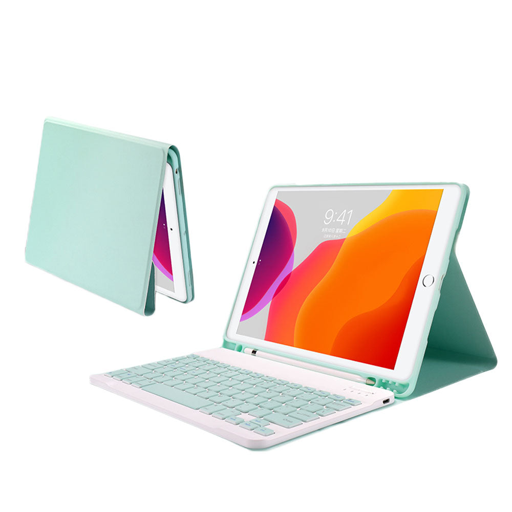 Keyboard Case For iPad Ultra Thin 7 Color Backlit Wireless Keyboard with Pen Slot-Green