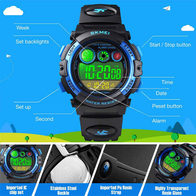 - EL night-light, large Dial and numbers. The watch is easy to handle in dark environments of cold light function display, easy to read time clearly for kids. Original Japanese digital movement, provide precise and accurate time keeping, making it easier for children to organize their time.