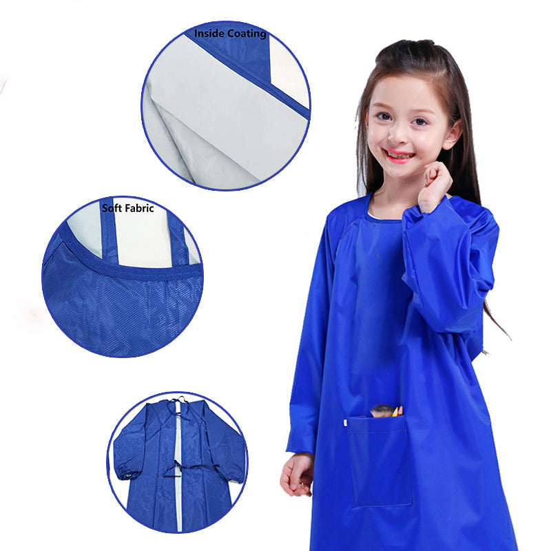 Kids Art Smocks Waterproof Artist Painting Long Sleeve Aprons for Children-SkyBlue