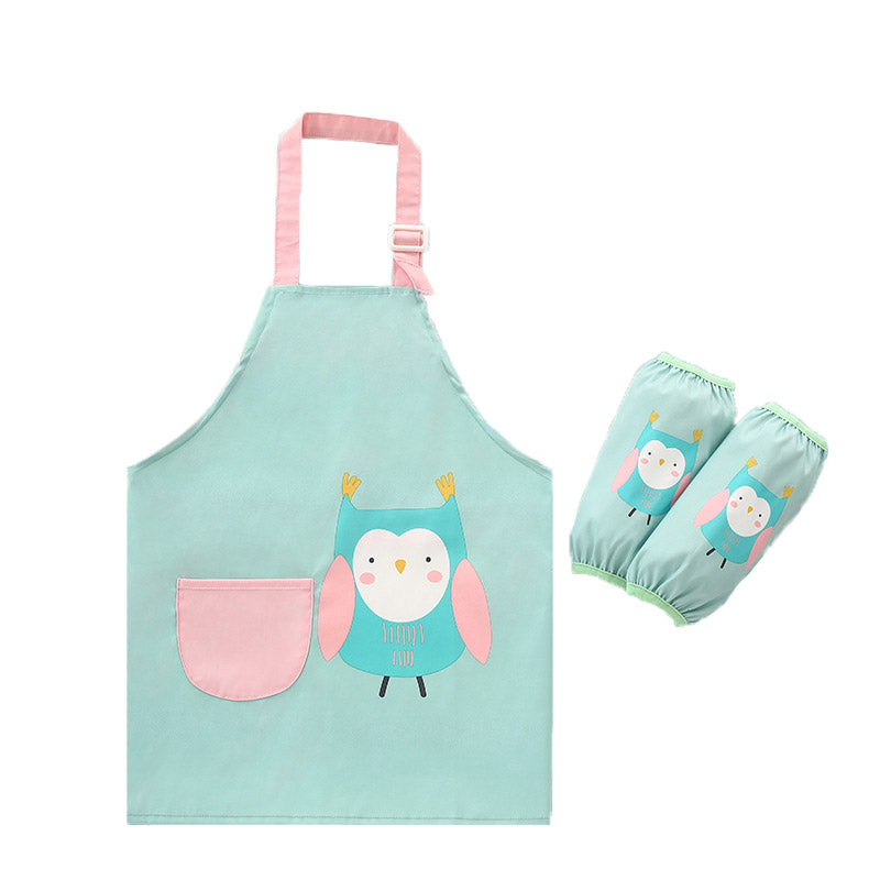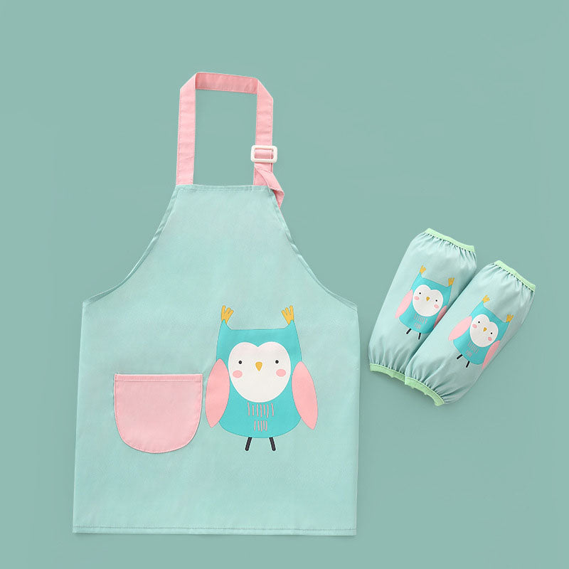 Kids Cartoon Animal Pattern Painting Waterproof Apron Set-Owl
