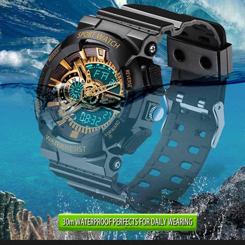 Kids Outdoor Multifunction Waterproof Watch with Alarm Chronograph-GoldBlack
