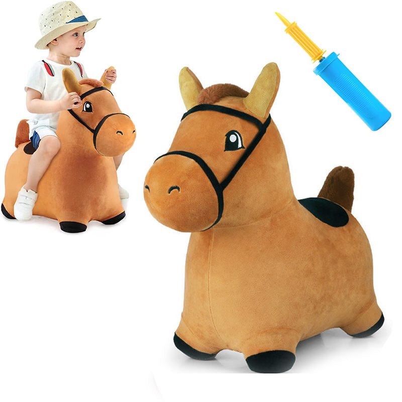 Kids Plush Ride Bouncing Toys Inflatable Hopping Animal with Pump-Horse