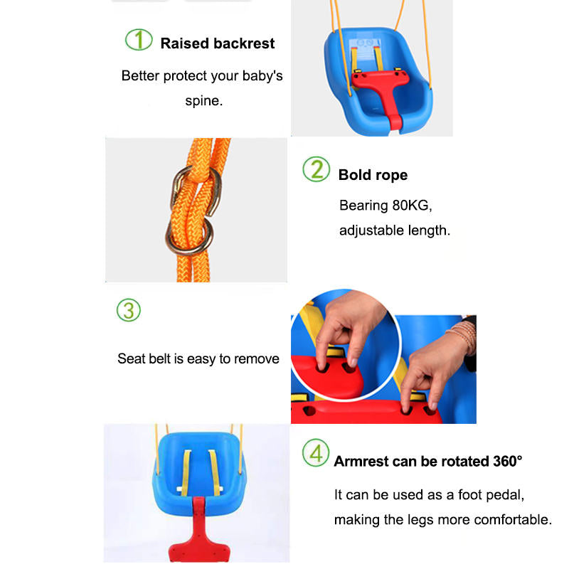 - Baby swing and toddler swing in one, because your baby will grow quickly, our swings are available for both babies and toddlers. This kids swing can support up to 80kg.