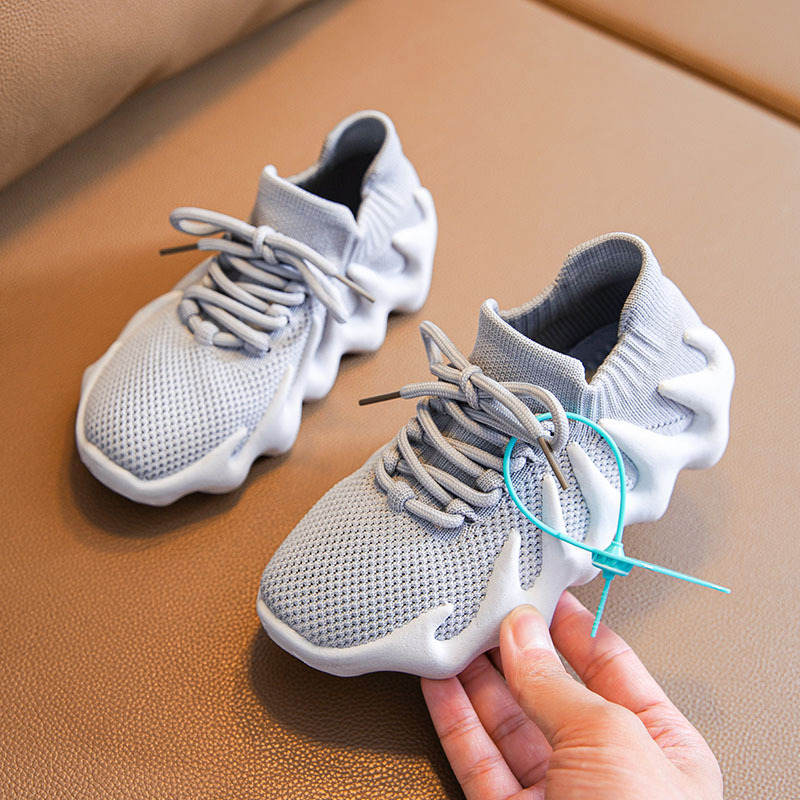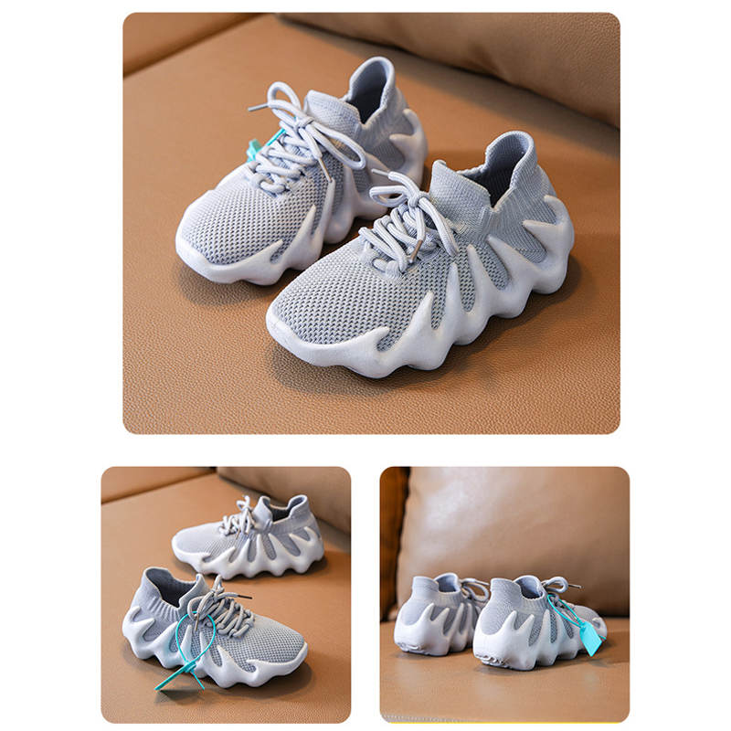 Kids Sneakers Knitted Breathable Cross Trainer Shoes-Grey