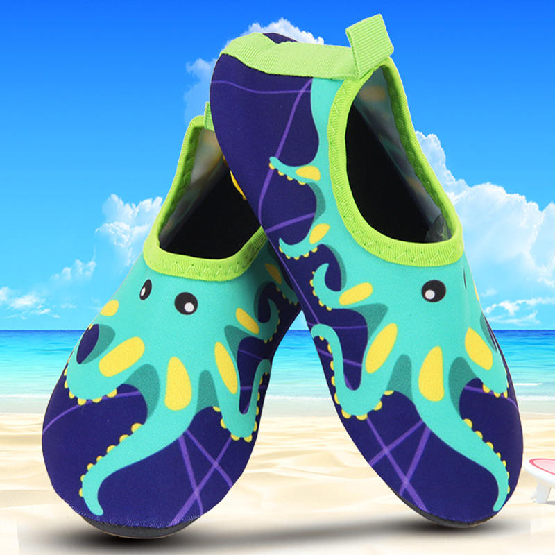 Kids Swim Water Shoes Quick Dry Non-Slip Barefoot Sports Shoes for Boys Girls-Octopus Blue
