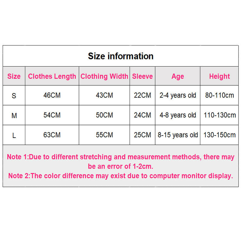 - Kids Apron Size: 3 Sizes Available: S (recommended for 2-4 years old); M (recommended for 4-8 years old); L (recommended for 8-15 years old)