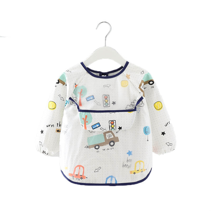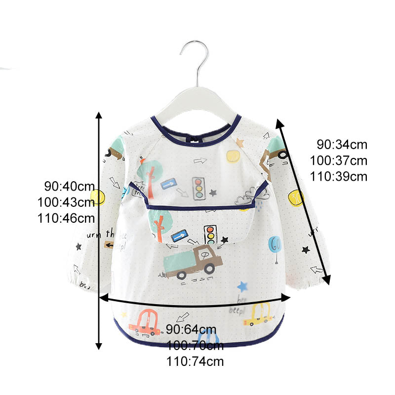 Kids Waterproof Art Smock Cartoon Long Sleeve Aprons with Bib-Car