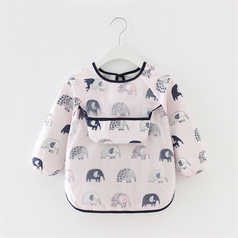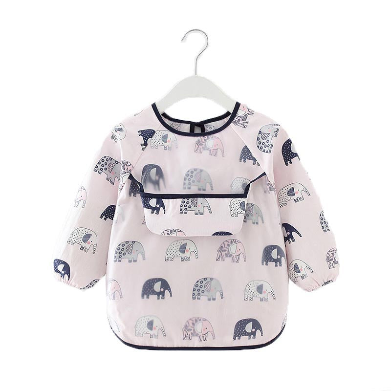 Kids Waterproof Art Smock Cartoon Long Sleeve Aprons with Bib-Elephant