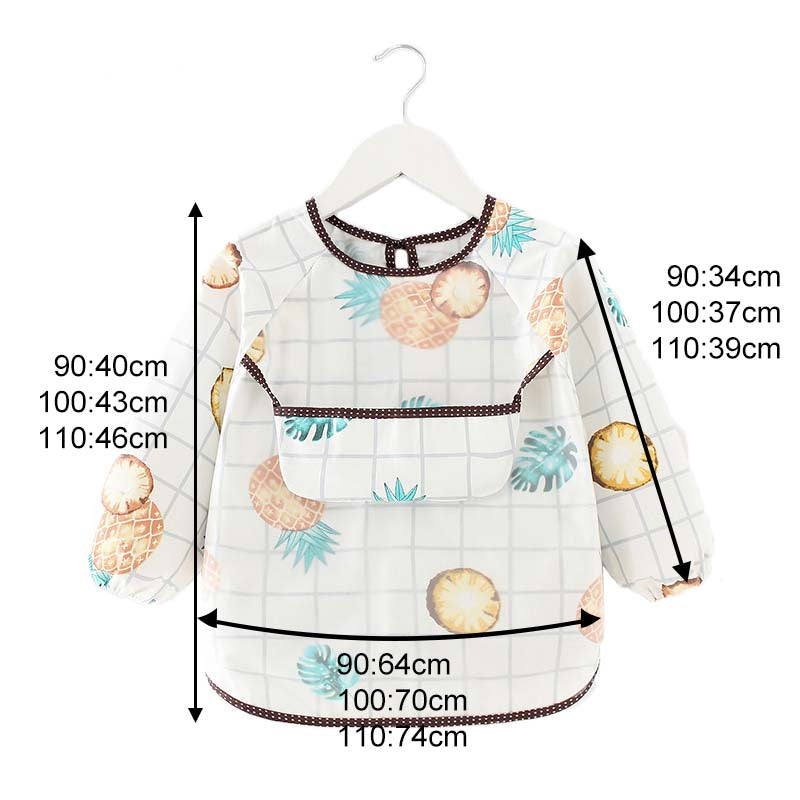 Kids Waterproof Art Smock Cartoon Long Sleeve Aprons with Bib-Pineapple
