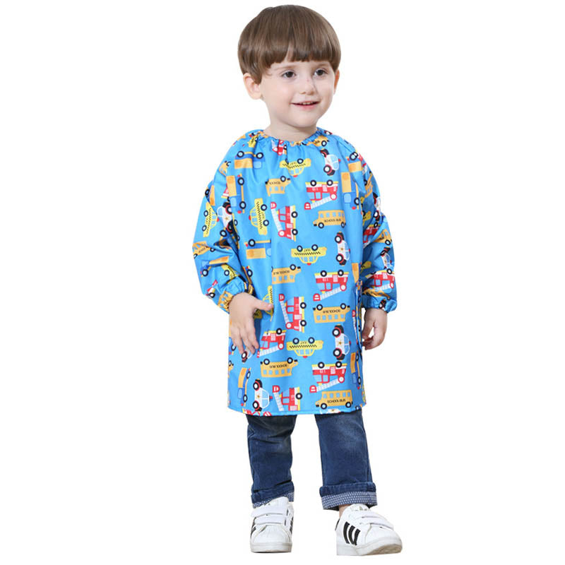 Kids Waterproof Smock Long Sleeve Cartoon Pattern Art Apron-Blue