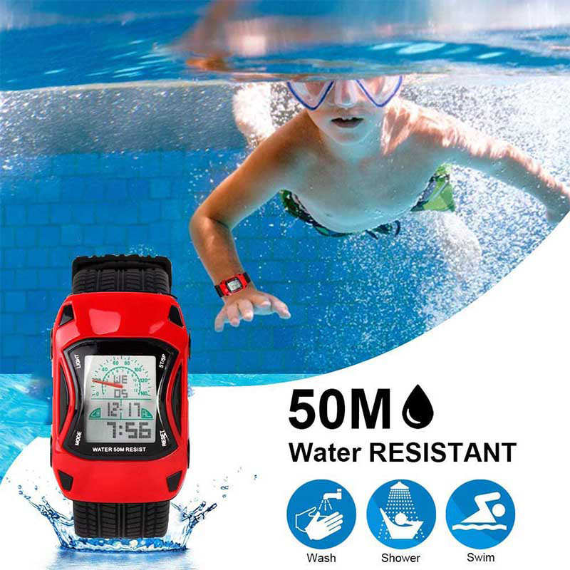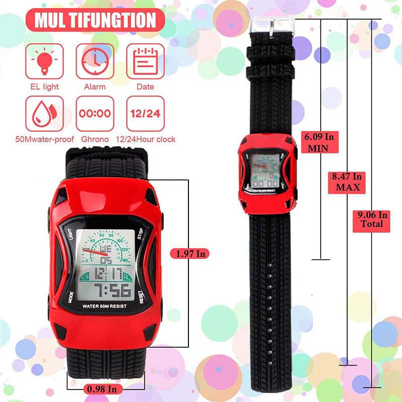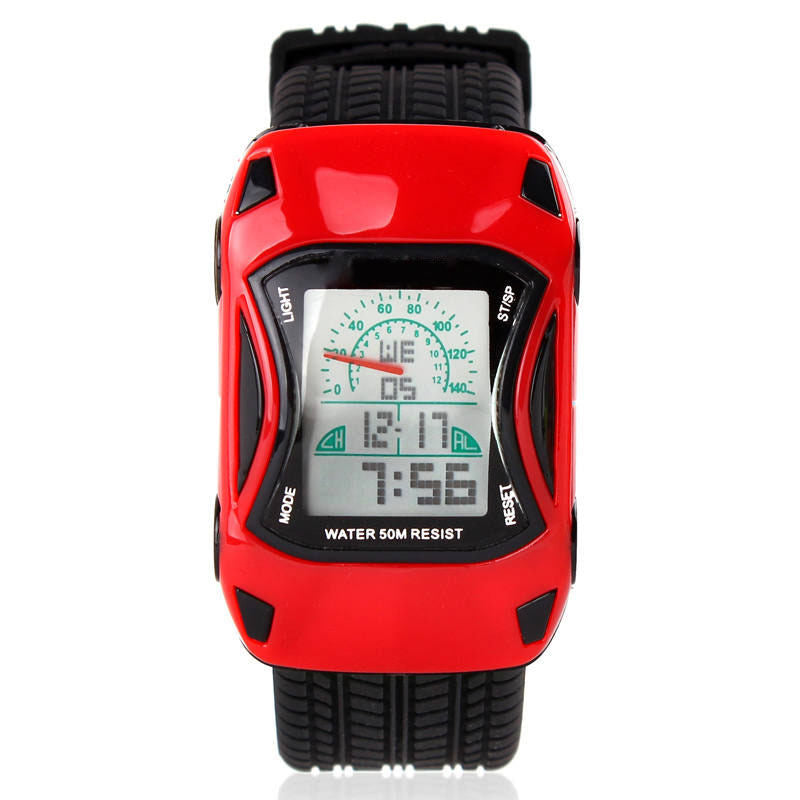 Kids Waterproof Sports Watches Digital LED Car Shape Watches-Red
