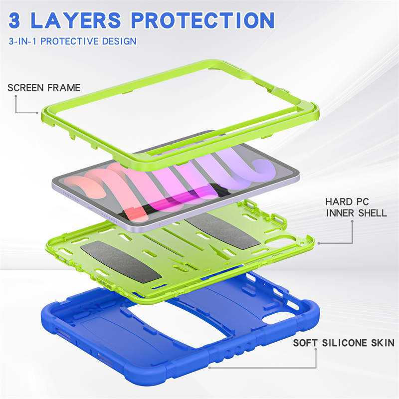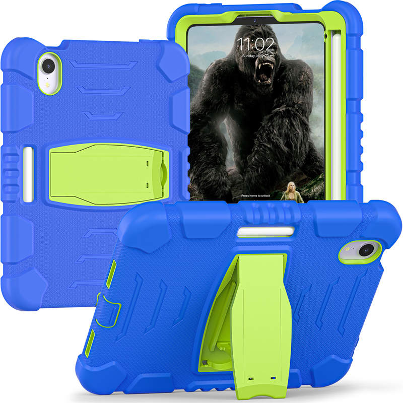 KingKong iPad Case For iPad Mini 6 Three-Layer With Holder-BlueLime