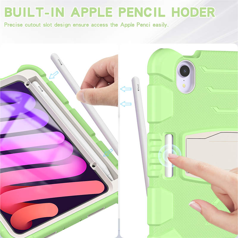 - PENCIL HOLDER & Kickstand Design: This shockproof iPad Mini 6 case has a built-in solid sturdy kickstand, you can adjust for optimal viewing and typing positions based on your needs. Hassle free to watch movies, videos or make video calls in a landscape mode. Designed with a Adsorption pen slot easily to carry your 2nd Apple Pencil with your device.