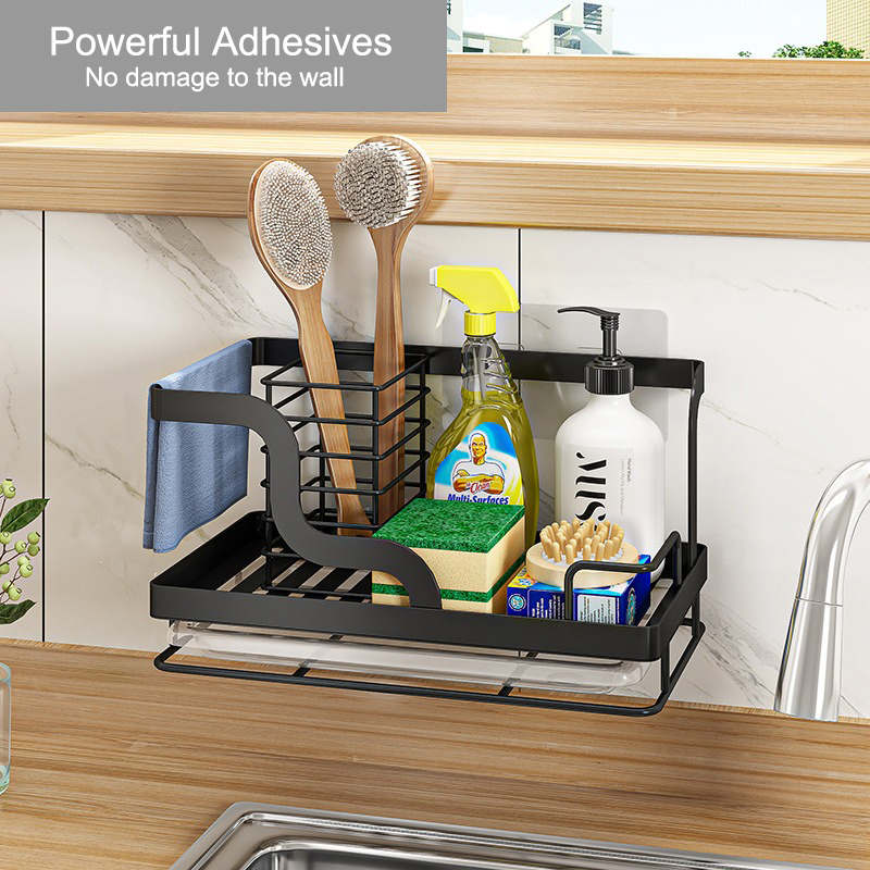 Kitchen Sink Organizer for Sponge with Removable Drain Pan Punch Free