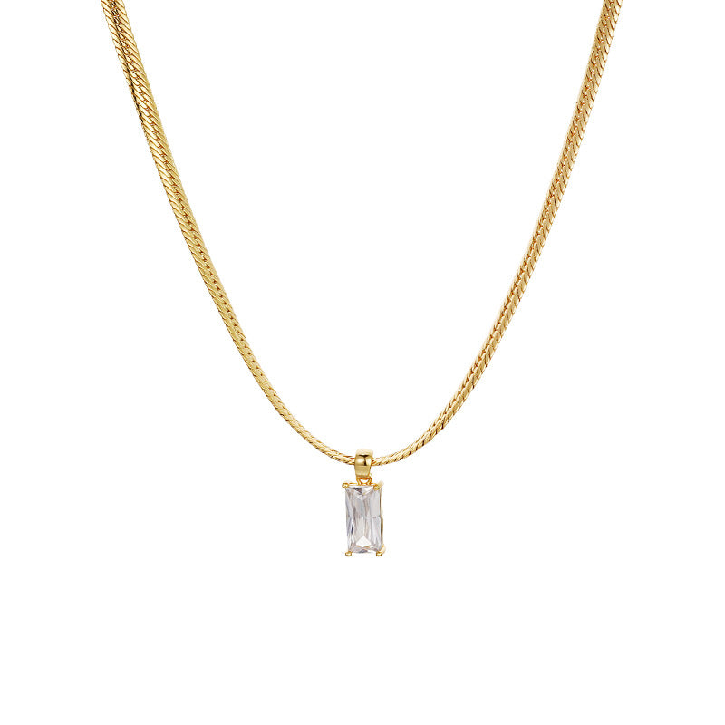 Ladies Exquisite Pendant Necklace Snake Bone Chain Emerald Zircon Clavicle Chain-White