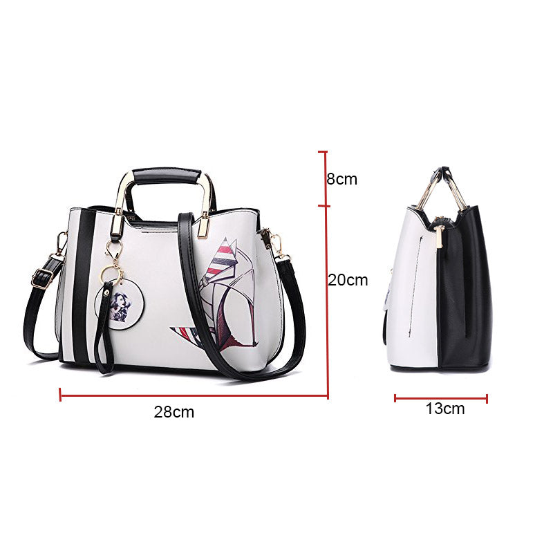 Ladies Leather Personalized Print Handbags Large Capacity Satchel-High Heel