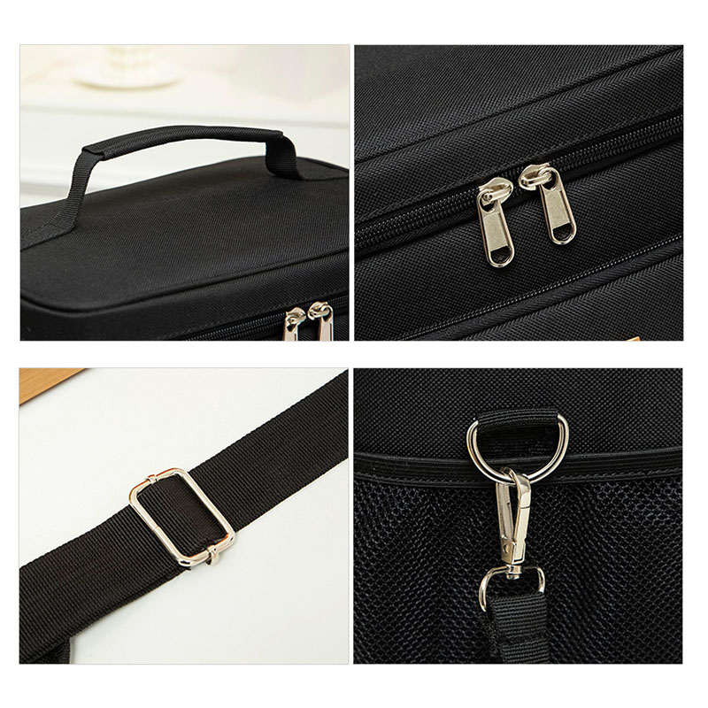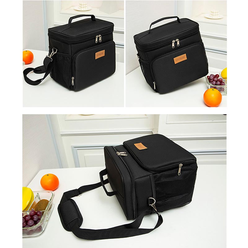Large Bento Lunch Bags Multi Pocket Insulated Shoulder Handle Bag-Black