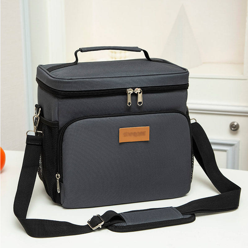 Large Bento Lunch Bags Multi Pocket Insulated Shoulder Handle Bag-Gray