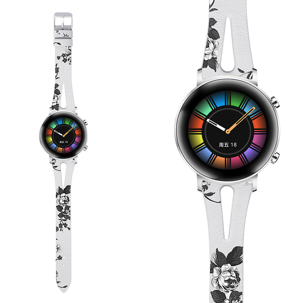 Leather Bands WIth Breathable Hole For Samsung S3/Galaxy Watch 46mm(White Grey Flower)