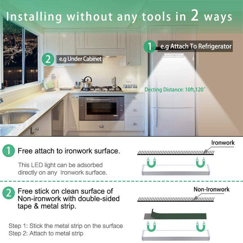 - Built-in strong magnetism can be directly absorbed on any iron product, or installed through a magnetic strip (included), without hard wiring. It is easy to install and remove