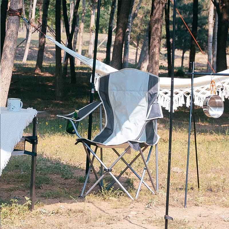 Lightweight Camping Chair with Arm Rest Cup Holder and Carry Bag-Grey