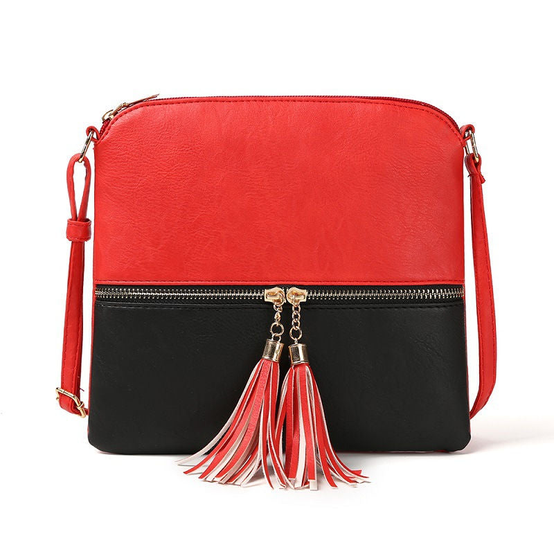 Lightweight Medium Crossbody Bag with Tassel-BlackRed