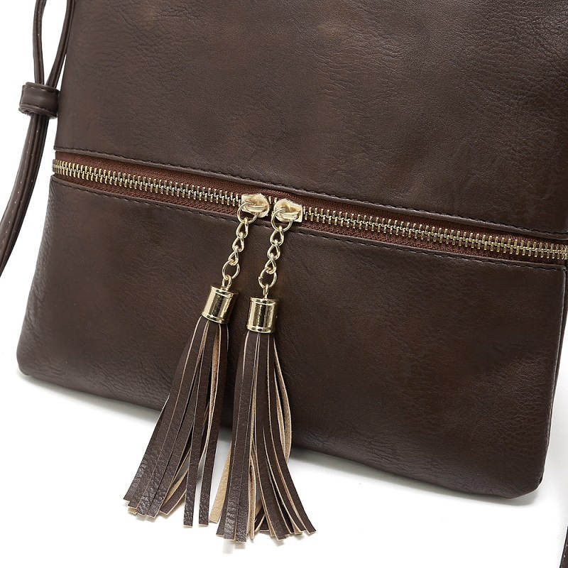 Lightweight Medium Crossbody Bag with Tassel-Coffee