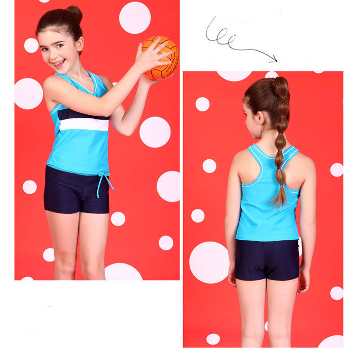 Little Girls Summer Two Piece Boyshort Fashion Tankini Swimsuit-Lake Blue