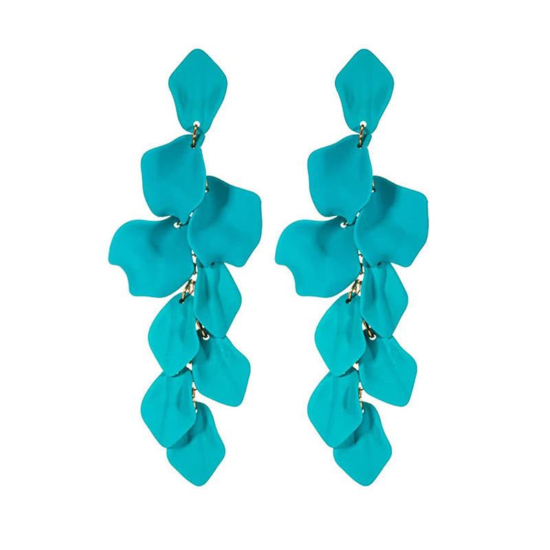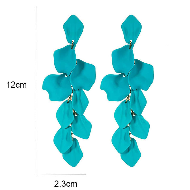 - Bring out your inner sophistication with these acrylic Rose Petal drops dangle earrings- crafted from Gorgeous acrylic petals worn in string around the ears . exaggerated and eye-catching,These long Muti-Tiered Flower earrings are distinctive pieces that add a contemporary finish to any outfit, whether you're going to work, going out, or going all-out.