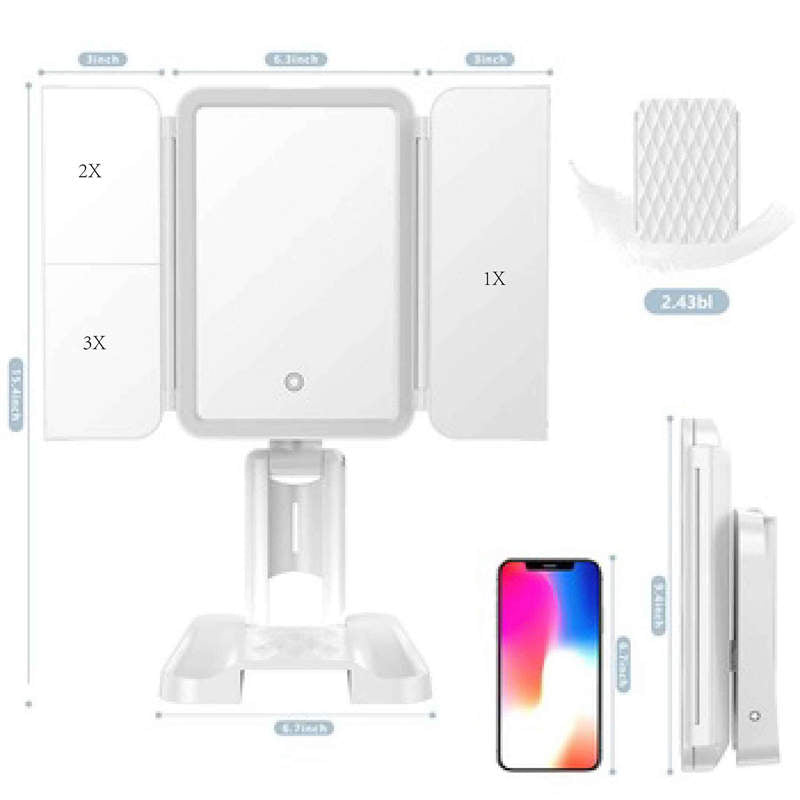 - [1X / 2X / 3X magnification] 3 panels zoom in and wide-angle viewing, so you can see your face clearly and make a flawless makeup. Through FCC, CE and RoHs certification, high-quality coating and finely polished surface treatment, it has an excellent user experience.