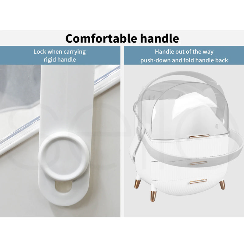 - Keeping all your beauty products in order is no easy task. Lucky, you won’t have to think much with your very own large makeup bag. Open the drawers or the top shelf. Pick what you need then return it after use.