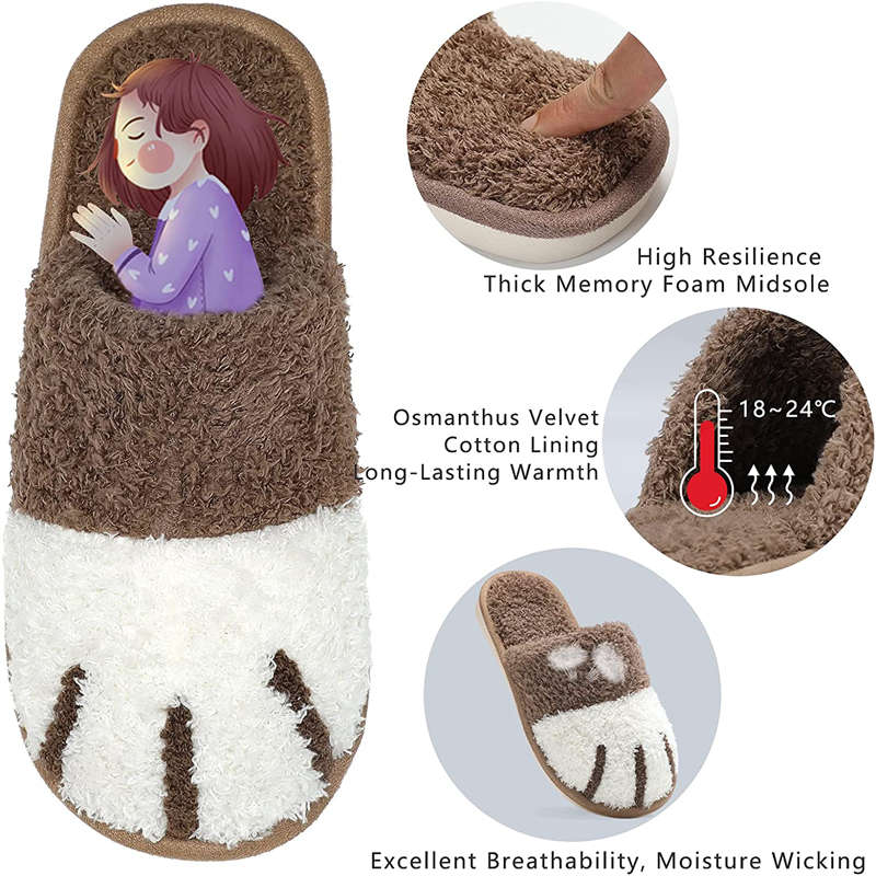 Memory Foam Unisex Slippers Comfortable Cute Animal Soft Shoes-Coffee