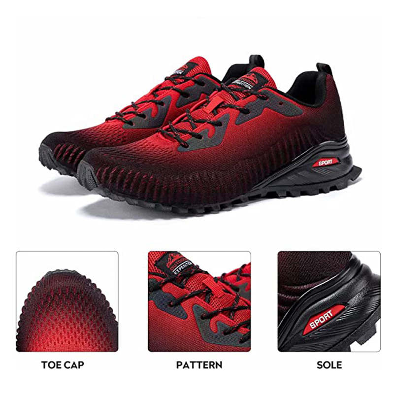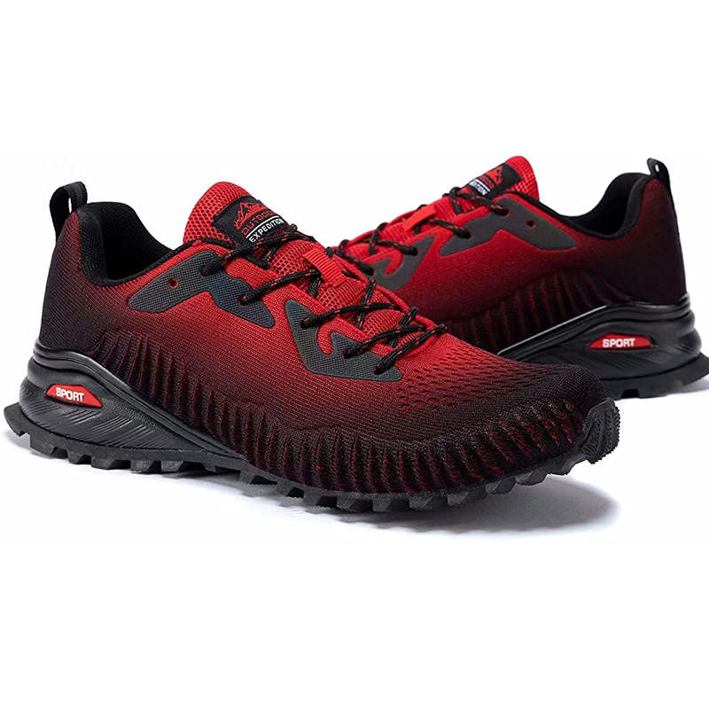 Mens Fashion Sneaker Breathable Trail Running Shoes-BlackRed