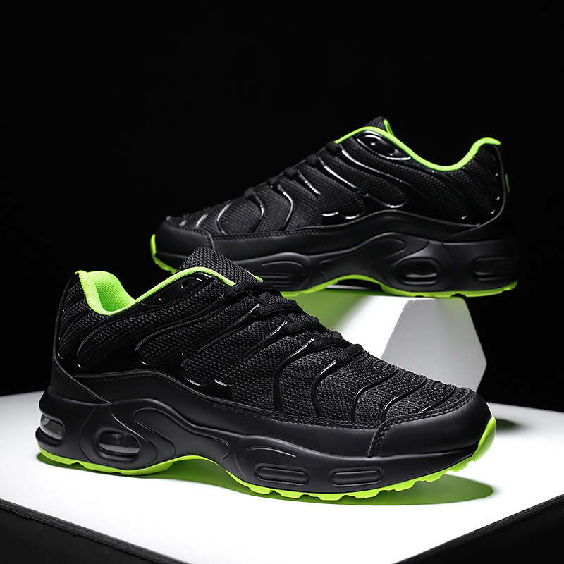 Mens Mesh Air Cushion Sneakers Outdoor Running Shoes-Black Green