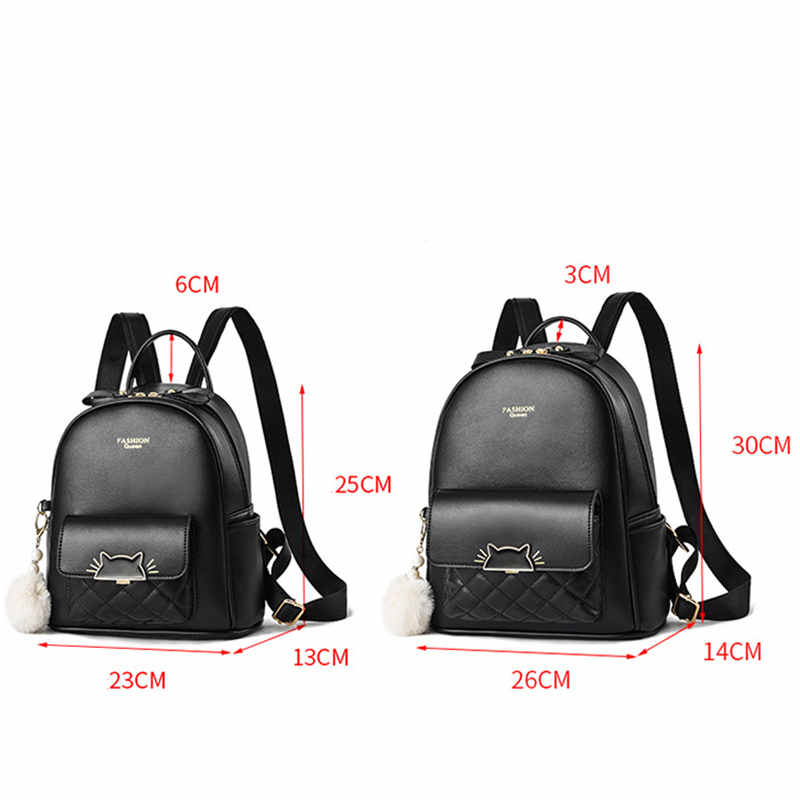 Mini Backpack for Women Cute Leather Small Bookbag with Cat Shaped Lock-Black