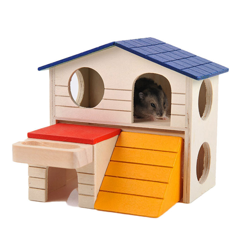 - Double layer design and with feeding trough, besides, it can be folded to save the room when storage Provides small animals with a hideout, promotes nesting and chewing instincts,Ideal for hamster, mouse and other small furry animals.