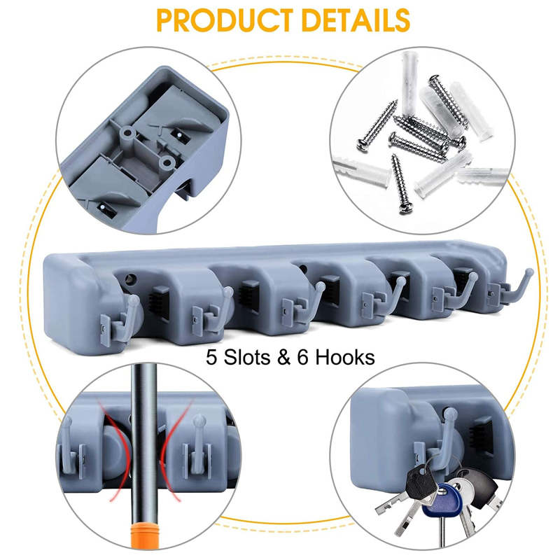 Mop Broom Holder Wall Hanging Garage Utility Tool Organizers-Gray2