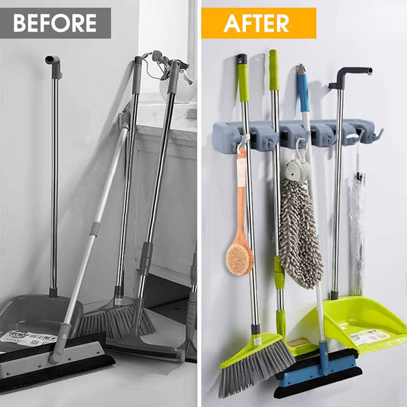 - Compact size for saving your space: The broom hanger Organize your broom closet, kitchen, garage, garden, basement, or laundry room with this sturdy and versatile storage solution. Also idea for garden and yard tools racks storage and organizer.