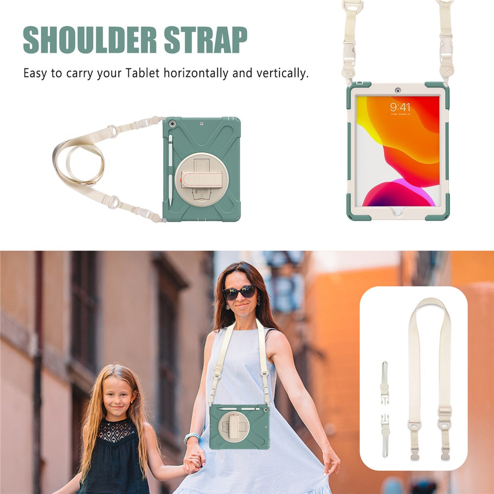 Morandi Case For iPad 10.2 2019/2020 Kids Safe Shockproof Protective Cover With Kickstand+Strap-Emerald Green