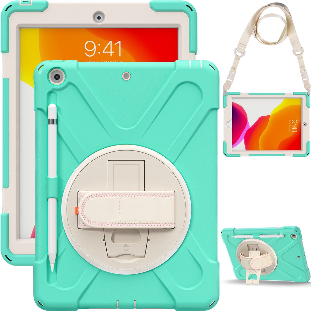 Morandi Case For iPad Mini 4/5 Kids Safe Shockproof Protective Cover With Kickstand+Strap-Mint Green