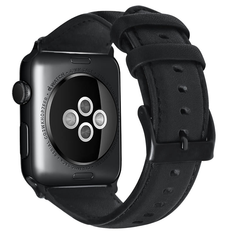 - Premium Material:100% full genuine leather replacement Apple Watch band, comes with precision-polished black stainless steel clasp constructed by premium craftsmanship to match watch face, classic and elegant, perfect fitting well in both business and casual occasions.