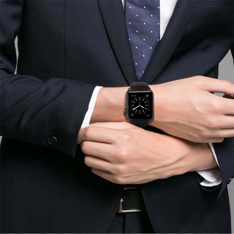 - Premium Material:100% full genuine leather replacement Apple Watch band, comes with precision-polished black stainless steel clasp constructed by premium craftsmanship to match watch face, classic and elegant, perfect fitting well in both business and casual occasions.
