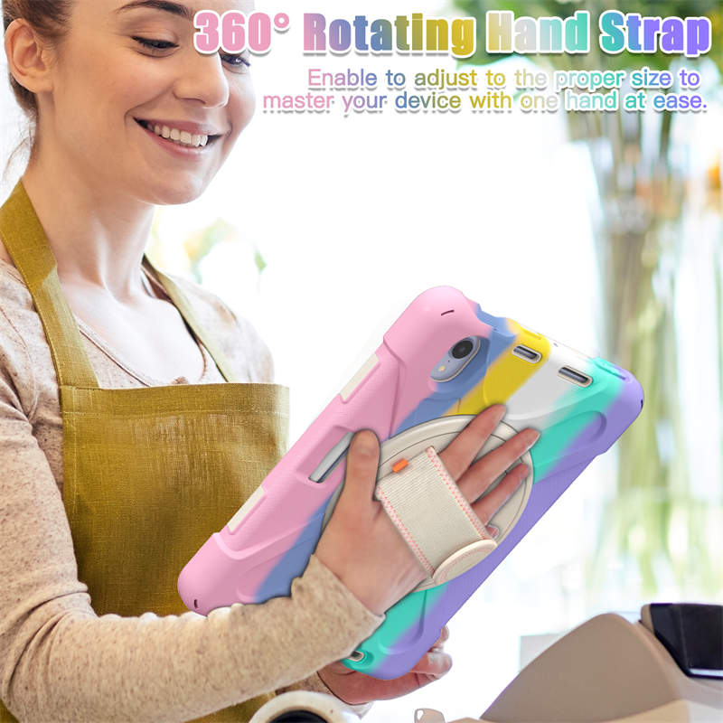 Onepiece iPad Case For iPad Mini 6 Rugged Kids Friendly Case With Holder Shoulder Strap-Colourfu Pink