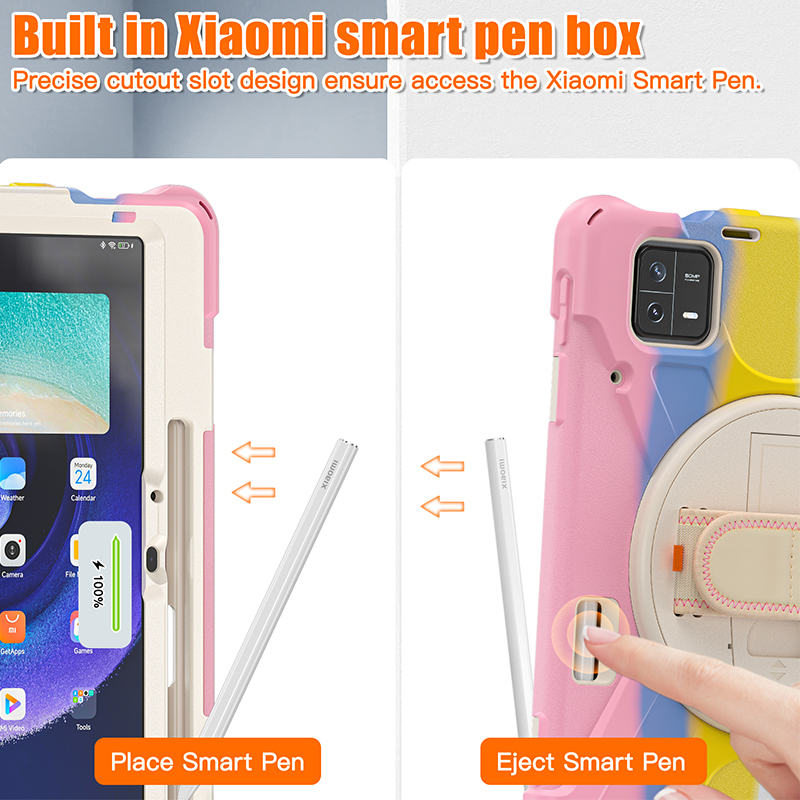 Onepiece Tablet Case for Xiaomi Pad 6 Rugged Lightweight Cover with Handle Strap Shoulder Strap-Colourful Pink