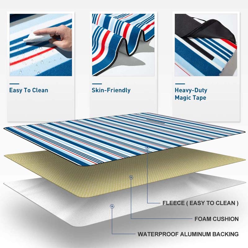 - Sturdy And Durable Material: Picnic mat is composed of three layers,the top is waterproof wool,the middle is sponge,and the bottom is PVC.It has a thick and sturdy fabric that is very comfortable for people of different weights.
